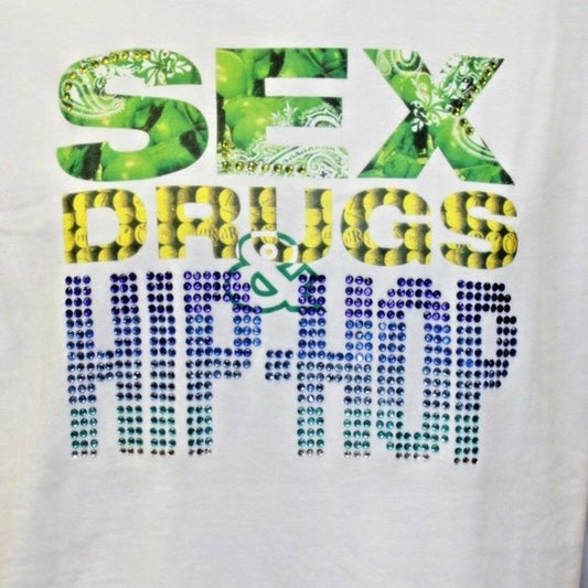 Men's Parish White "Sex Drugs & Hip Hop" Short Sleeve Tee Shirt NWT