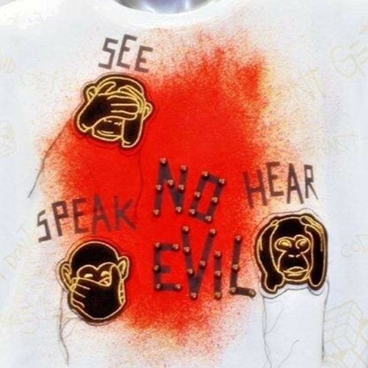 Men's Parish White | Orange | Yellow "No Evil" Short Sleeve Tee Shirt NWT
