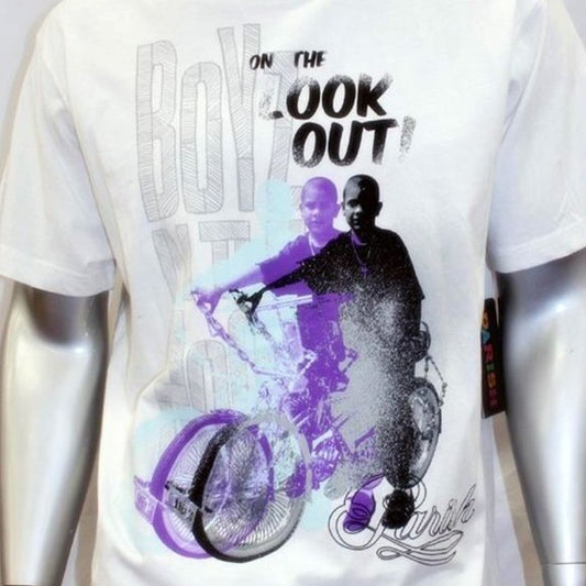 Men's Parish White | Purple "Boyz in the Look Out" Short Sleeve Tee Shirt NWT