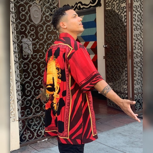 Men's Pelle Pelle Red | Black | Yellow African Art Button Down Shirt NWT