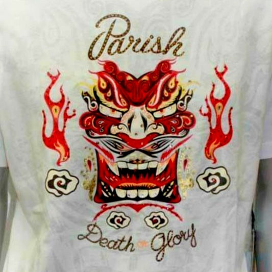 Men's Parish White | Orange "Death or Glory" Short Sleeve Tee Shirt NWT