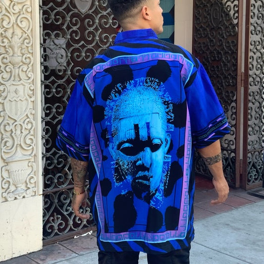Men's Pelle Pelle African Art Royal Blue | Black | Sky Blue Button Down S/S Shirt NWT