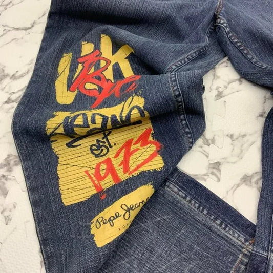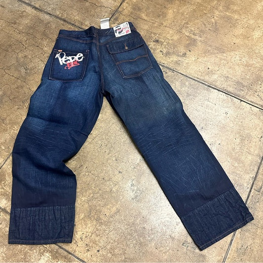 Men's Pepe Jeans Streetwear Dark Blue Wide Leg Denim Pants NWT