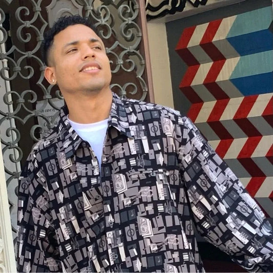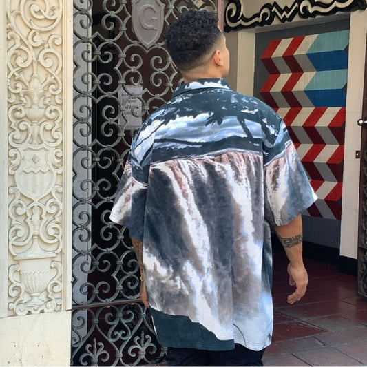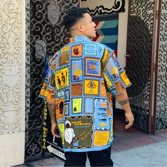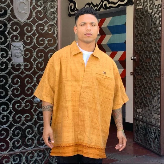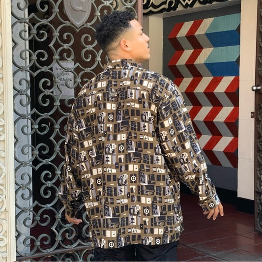 Men's Pelle Pelle Wheat African Art Button Down Shirt NWT
