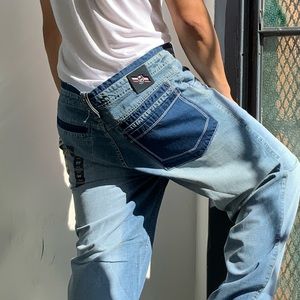 Men's Phat Farm Mid Blue Sandblast Spikes Denim Pants NWT