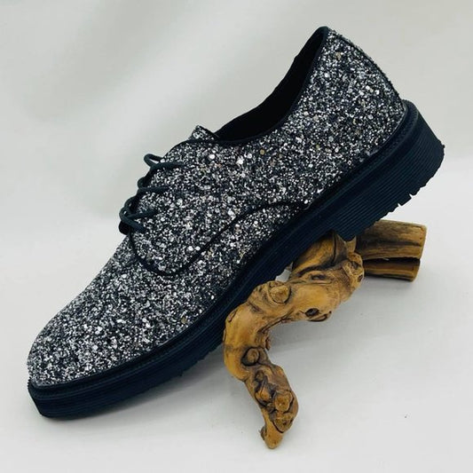 Men’s Angelino Silver | Black Glittered Fashion Sneakers NWT