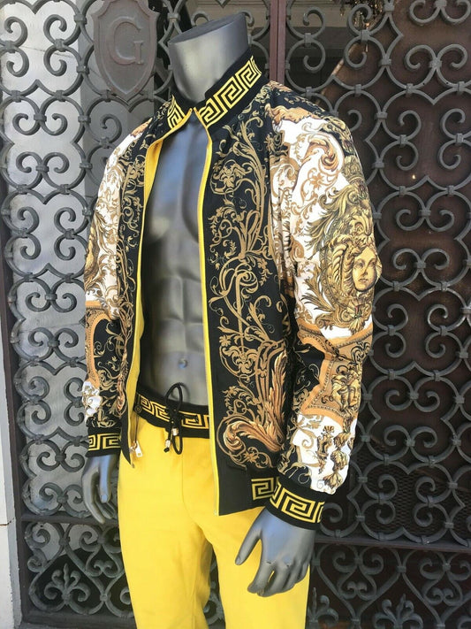 Men's Yellow | Black | White Velour Reversible Fifted Fashion Tracksuit