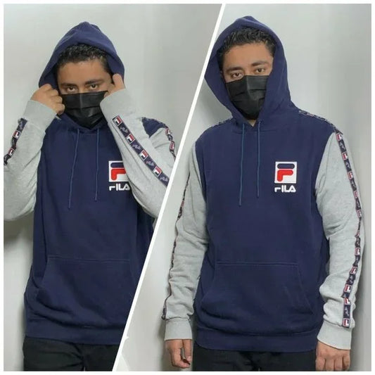 Men's Fila Navy | Grey | White Fashion Pull Over Hoodie NWT