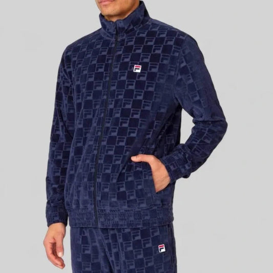 Men’s Fila Navy All Over Velour Casual Outfit Set Tracksuits NWT