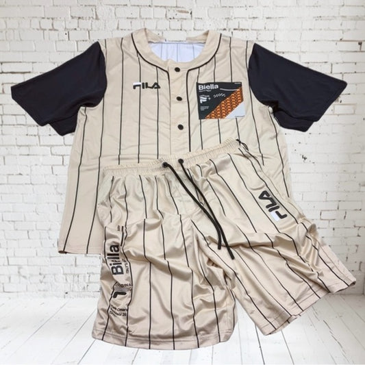 Men's Fila Beige | Black Pinstripes Jersey Short Set NWT