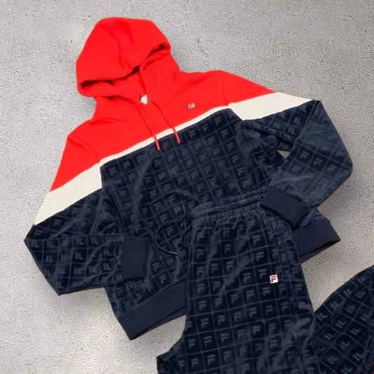 Women’s Fila Red Fleece Navy All Over Velour Fashion Tracksuit NWT