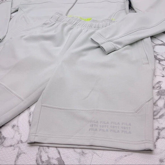 Men's FILA Light Grey Full Zip Hooded Short Set