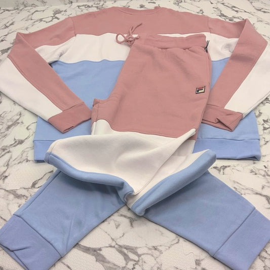 Men's Fila Pink Lt.Blue White Fleece Sweatsuit NWT