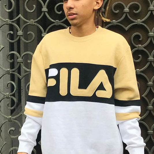 Men's Fila khaki | Black | White Pull Over Fleece Crewneck NWT