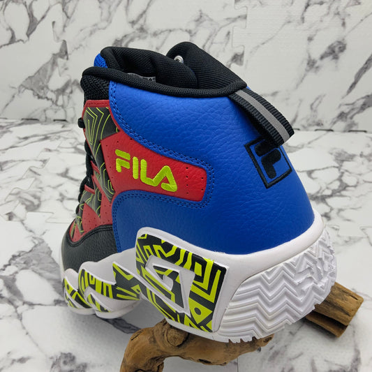 Men’s Fila MB Black | Royal Blue | Red | White | Lime Green Mid-Top Sneakers NWT