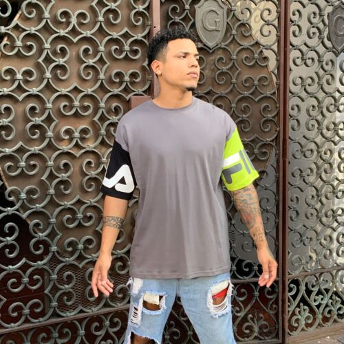 Men’s Fila Grey | Black | Lime Green | White Fashion Short Sleeve Tee Shirt NWT