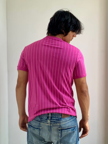 Men’s Fila Fuchsia | White Striped Short Sleeve Tee Shirt NWT