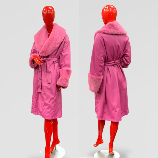 Women’s Bubblegum Pink Faux Leather Fabric & Faux Fur Coat By Jakke NWT