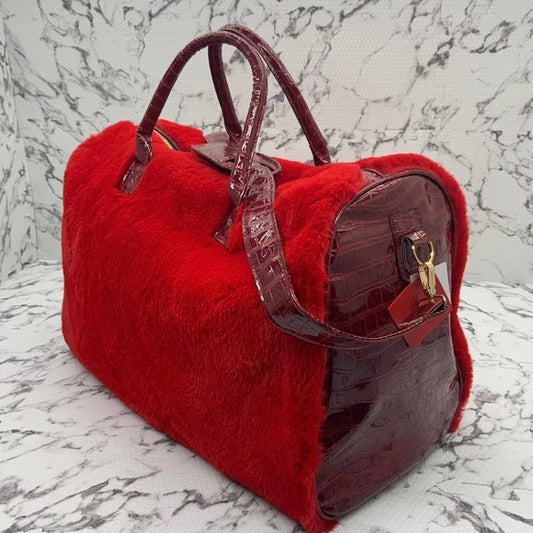Men's Manzini Red | Burgundy Faux Fur Large Duffle Bag NWT
