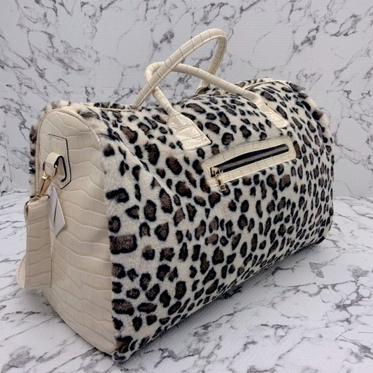 Men's Manzini Cream | Animal Print Faux Fur Large Duffle Bag NWT