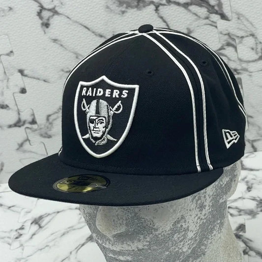Men's New Era Cap Black | White Double Pipping Raiders NFL 59FIFTY Hats NWT