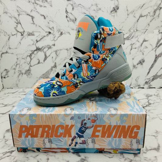 Men’s PATRICK EWING 33 HI X ACE VENTURA Grey | Sky Blue | Orange Sneakers NWT