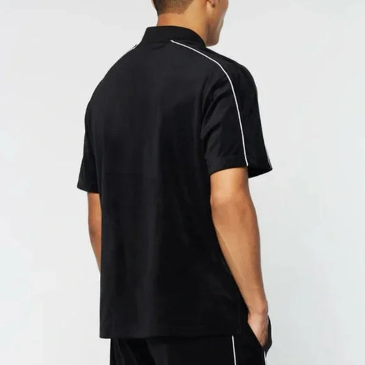 Men's Sergio Tacchini Black | White Pipping Velour Casual Polo Shirt NWT