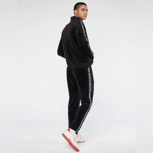 Men’s Sergio Tacchini Black | White Outline Velour Full Zip Casual Tracksuit NWT