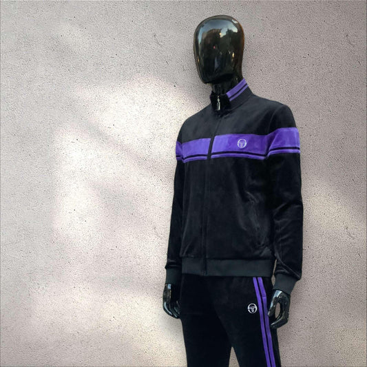 Men’s Sergio Tacchini Black | Purple Velour Full Zip Casual Tracksuit NWT