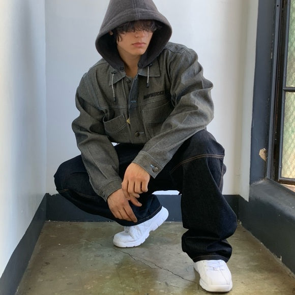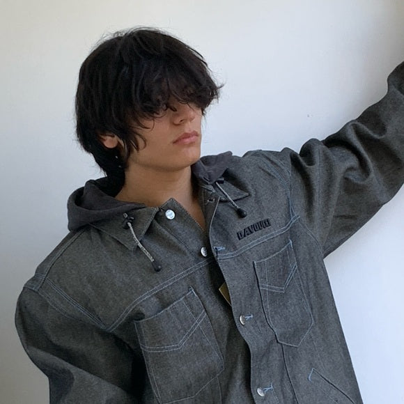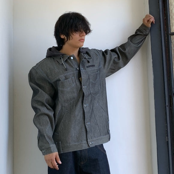 Men's Davoucci Grey Fleece Hoodie Denim Jacket NWT