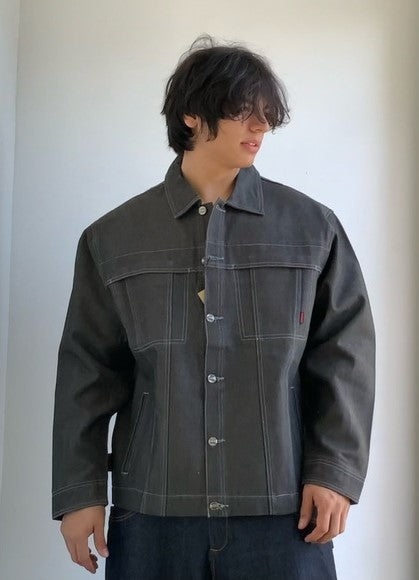 Men's Davoucci Charcoal Grey Casual Denim Jacket NWT