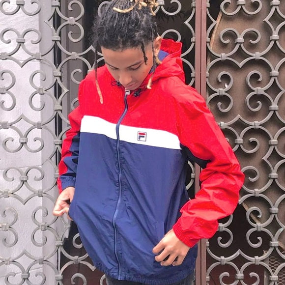 Men's Fila Navy | White | Red Windbreaker Hooded Jacket NWT