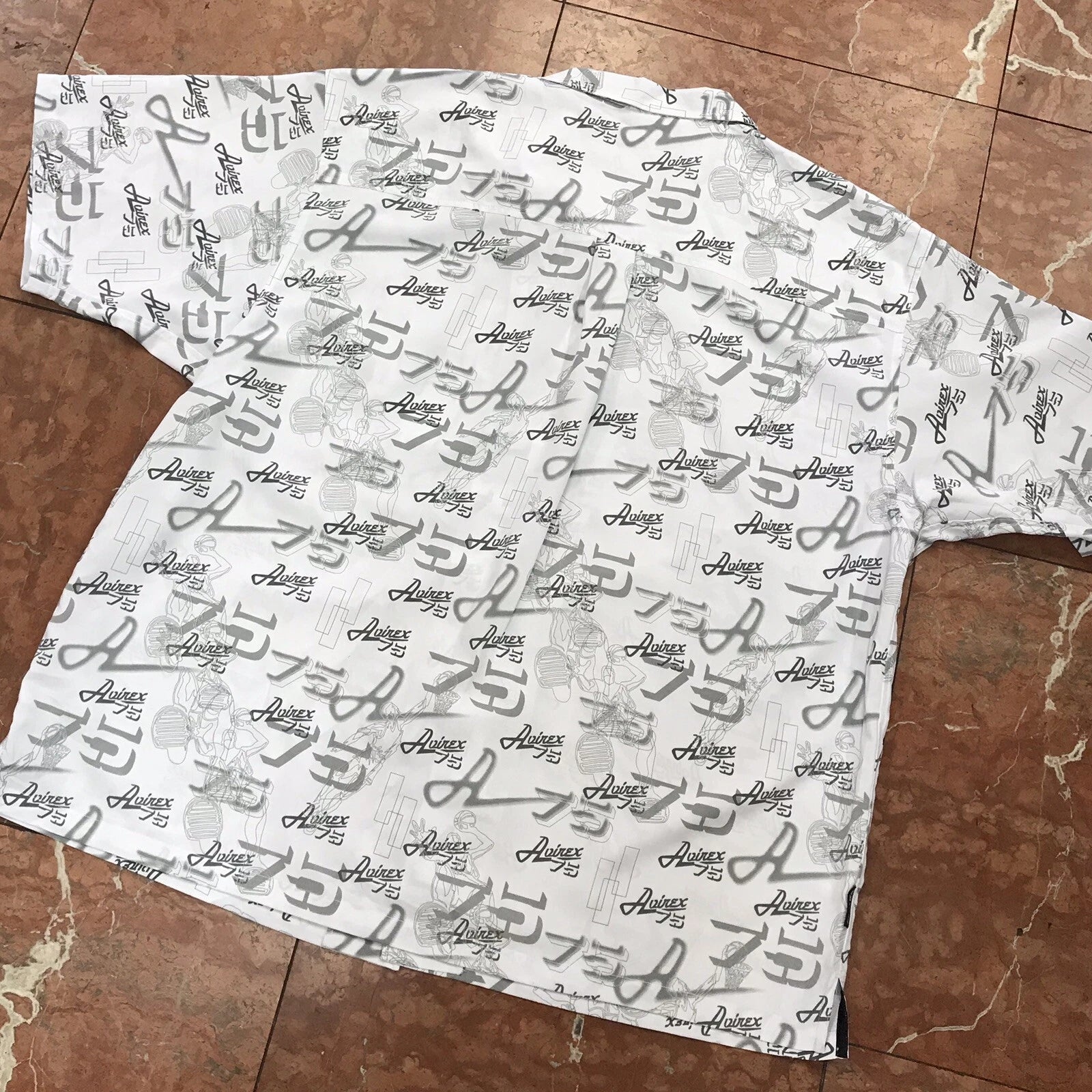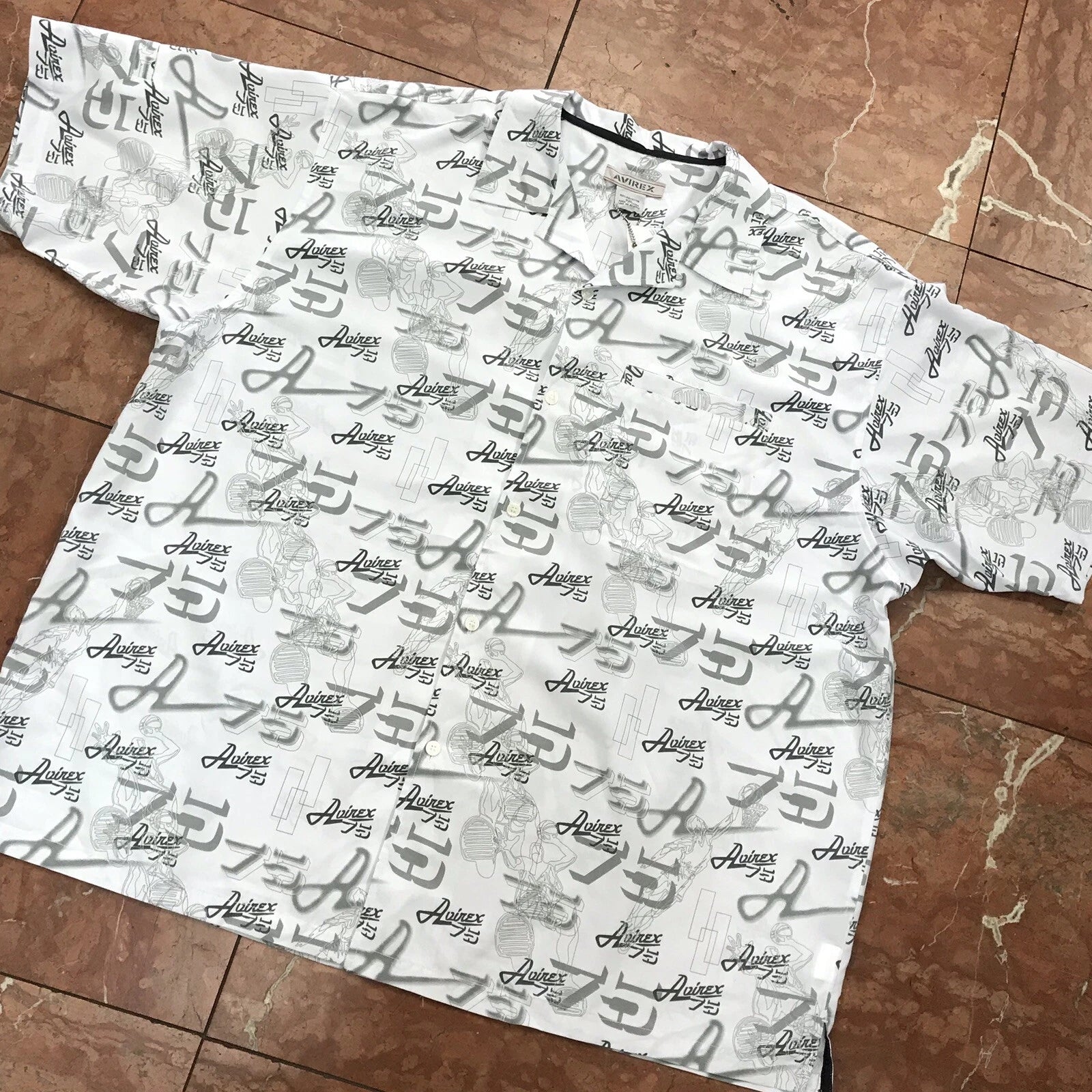 Men's Avirex White | Grey All Over Short Sleeve Button Down Shirt