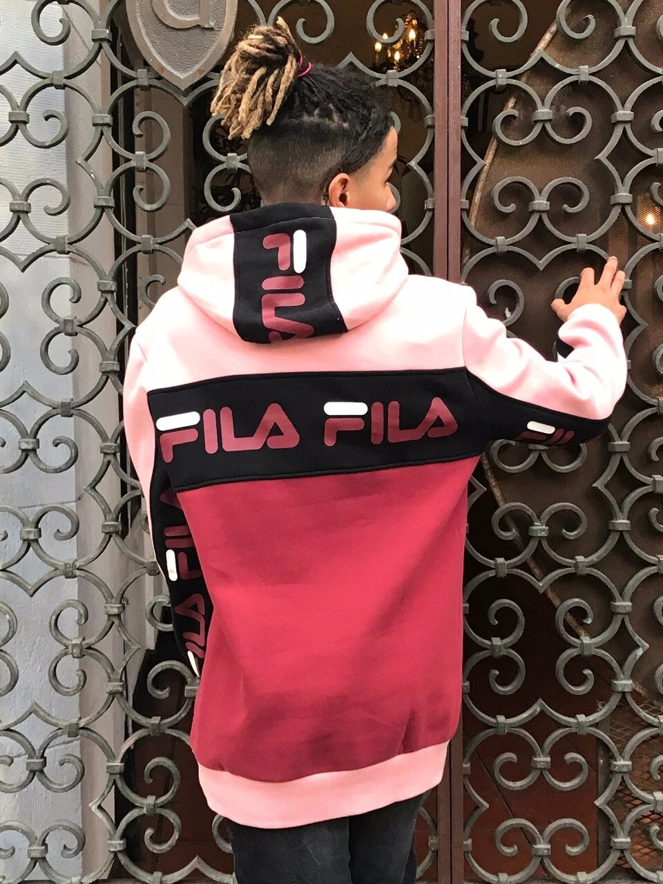 Men's Fila Lt.Pink | Red | Black Hooded Fleece Sweatshirt