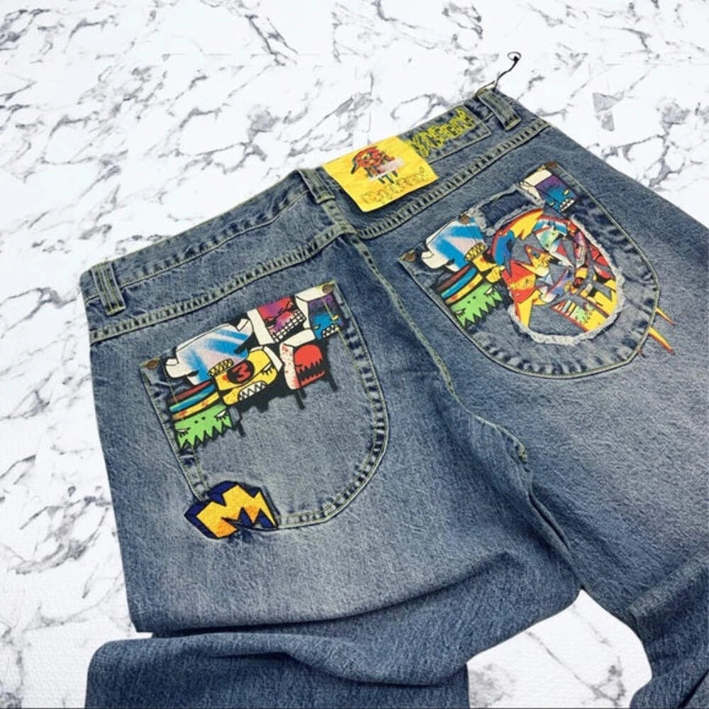 Men's Miskeen Streetwear Blue Wide Leg Denim Pants NWT
