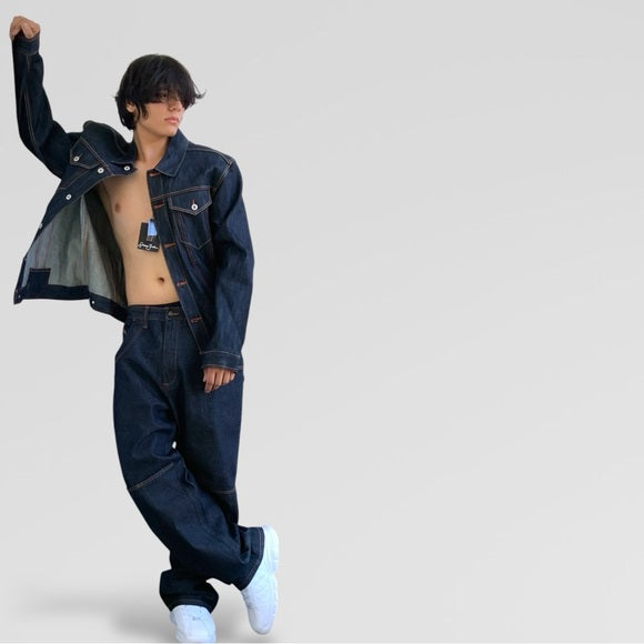 Men's Sean John Raw Dk Blue Button Down Denim Jacket NWT