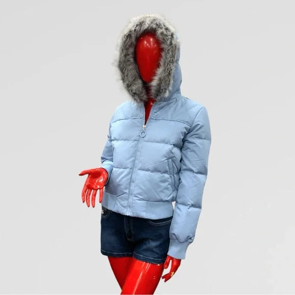 Women’s Sky Blue | Grey Faux Fur Jacket JLO by Jennifer Lopez NWT
